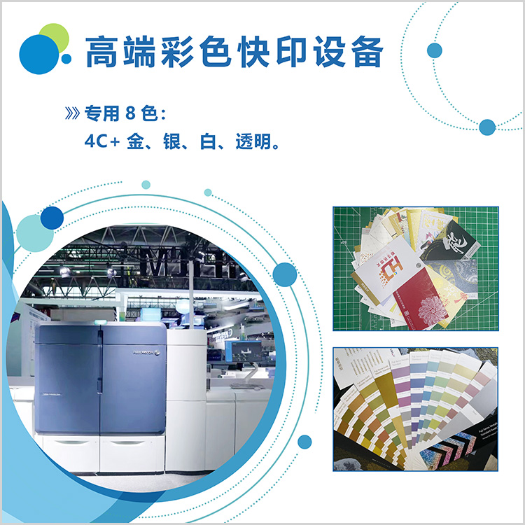 【特點(diǎn)】彩色黑白快印,一張起??;各業(yè)務(wù)部現(xiàn)場(chǎng)制作,立等可??;快印、裝訂一條龍服務(wù)。 【優(yōu)勢(shì)】彩色8色彩印,達(dá)到業(yè)內(nèi)高端水平;黑白印刷達(dá)到2440像素,圖案及文字高度清晰 【適用】各種紙張類(lèi)印刷品,批量少,工期急的印品,如畫(huà)冊(cè)、DM單、請(qǐng)柬、賀卡、不干膠貼紙等等