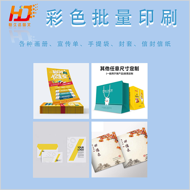 【高端設(shè)備】專業(yè)的4色、5色海德堡印刷機(jī)、馬天尼騎釘線、膠裝線 【完善流程】前期文件把關(guān)、中期印刷質(zhì)檢、成品打包質(zhì)檢、送貨快遞一條龍服務(wù) 【主要產(chǎn)品】各種畫冊、宣傳單、手提袋、封套、信封信紙等各種紙質(zhì)印刷品