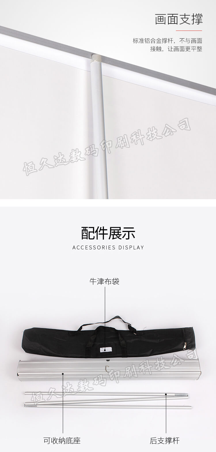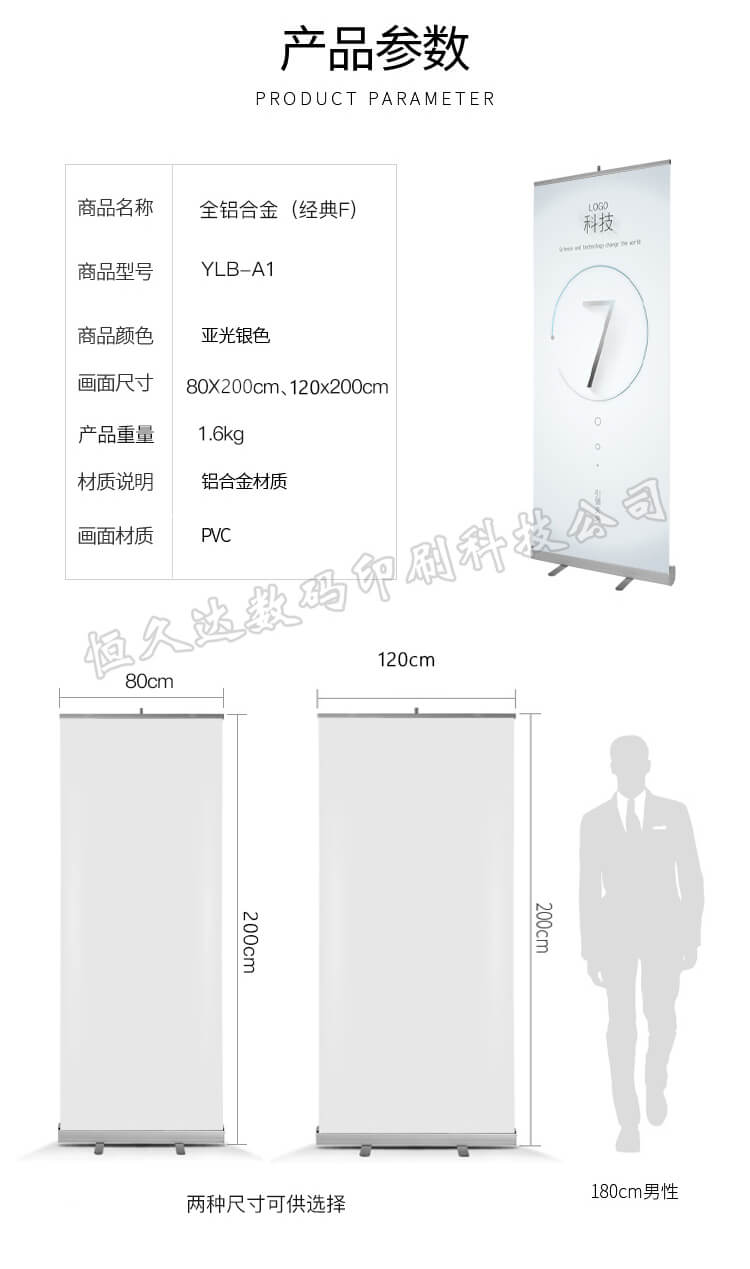 易拉寶: 常用規(guī)格:80*200、120*200、150*200; 常用材質(zhì):加厚塑鋼款、經(jīng)典鋁合金款、出口加厚款、水滴款;